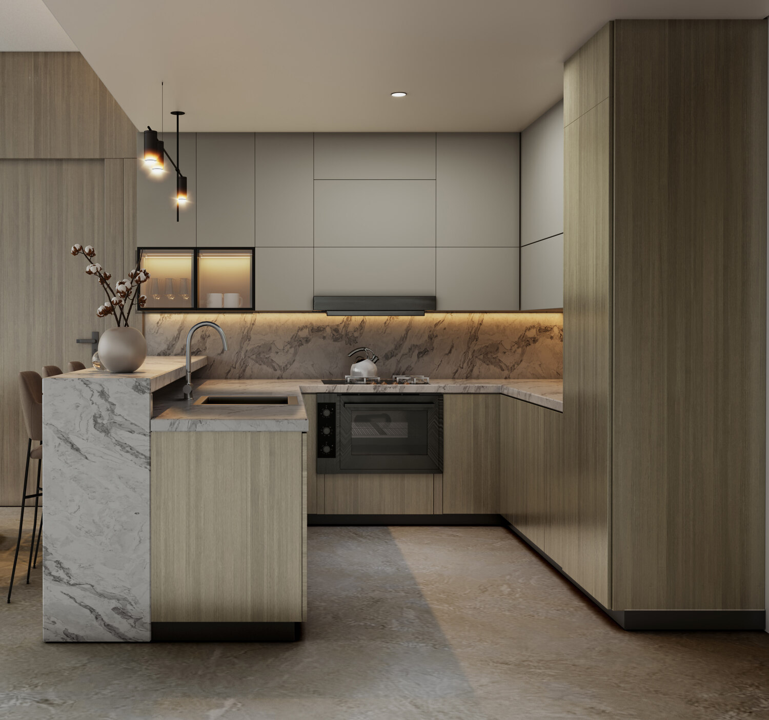 高品質の素材とスマートホーム システムを使用したモダンな仕上げ。