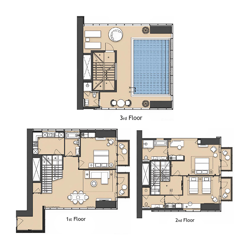 Triplex3 bedroom + pool